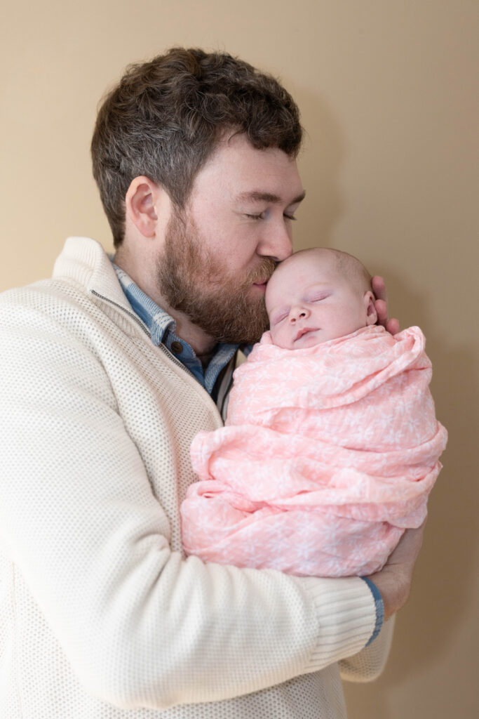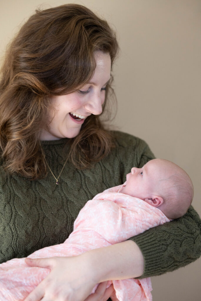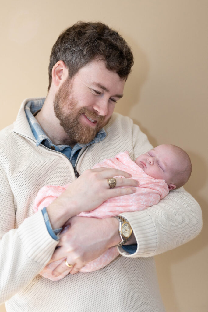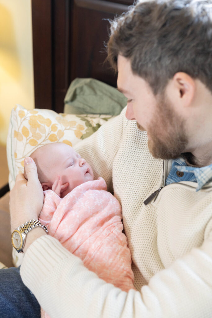For in-home newborn sessions, you can relax and feed and cuddle your baby as needed, and trust that the most meaningful images come from relaxed, real moments. Soft window light, neutral clothing, and a calm pace make all the difference.